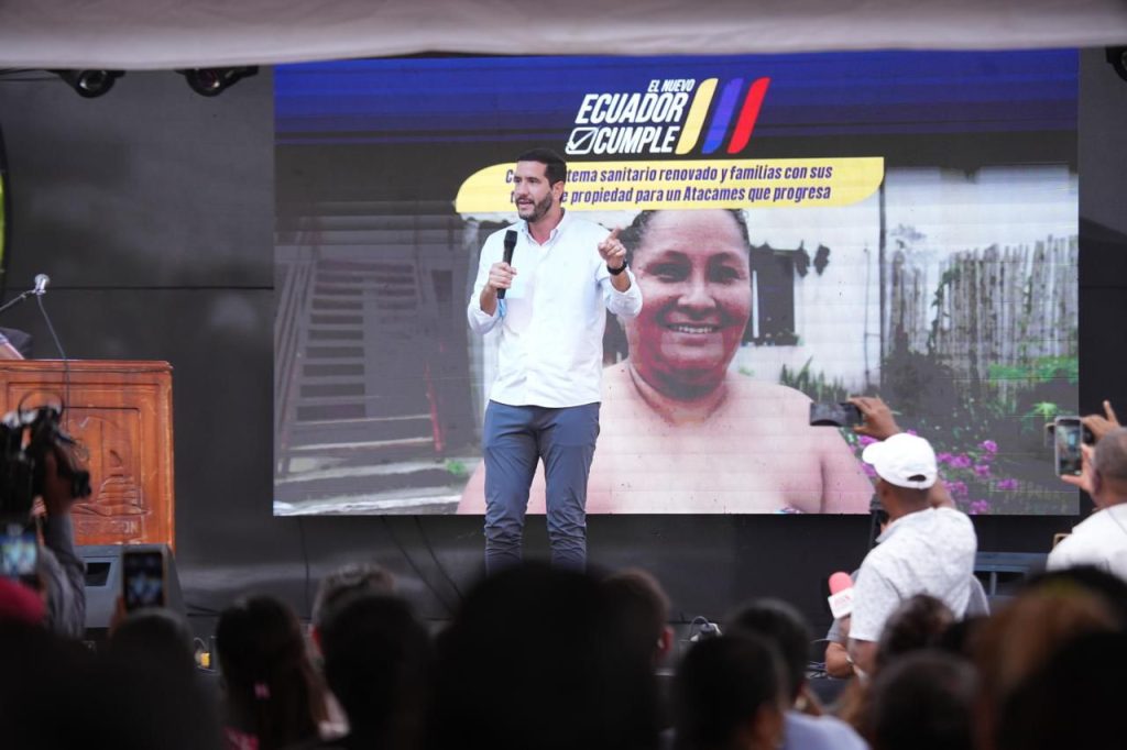 “Vamos a empezar con Muisne, donde no solo impulsamos la entrega de títulos de propiedad y el mejoramiento de barrios, sino también una obra histórica: el sistema de agua potable. Después de más de 100 años sin este servicio básico, hoy se está construyendo agua potable para su gente. Gracias a la voluntad política del Presidente, tenemos en marcha varios proyectos: el puente San Francisco de 75 metros que ofrecimos y hoy ya cuenta con dictamen de prioridad. Este puente será una realidad el próximo año”, resaltó el Ministro Roberto Luque.