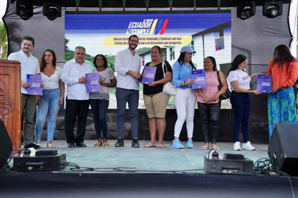 Durante su visita a la provincia, el ministro de Infraestructura y Transporte (MIT), Roberto Luque, cumplió una amplia agenda de trabajo que incluyó la entrega de 310 títulos de propiedad en Esmeraldas, de los cuales 102 corresponden a Atacames y 208 a Muisne, con una inversión total de USD 102.681,58 entre 2024 y 2025. Estos títulos brindan seguridad jurídica y facilitan el acceso a créditos y programas de vivienda.