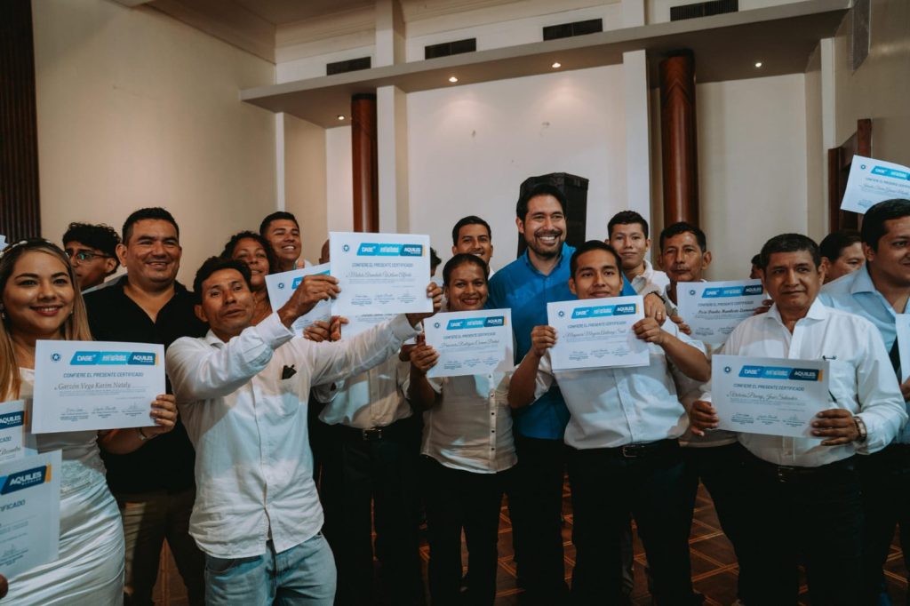 La subgerente de Proyectos Sociales de EP DASE, Emilene Aguayo, participó en la ceremonia junto a los graduados y sus familias, y subrayó el impacto social de la iniciativa. Adicional, manifestó que la inversión pública no solo puede ser puentes calles, infraestructura, también es invertir en las personas. “Desde la visión de nuestro alcalde Aquiles Alvarez, que hoy está representando por la alcaldesa subrogante Tatiana Coronel, tenemos la línea de lo importante que es invertir en cada uno de ustedes, porque para la Alcaldía de Guayaquil invertir en ustedes no es gasto”, dijo.