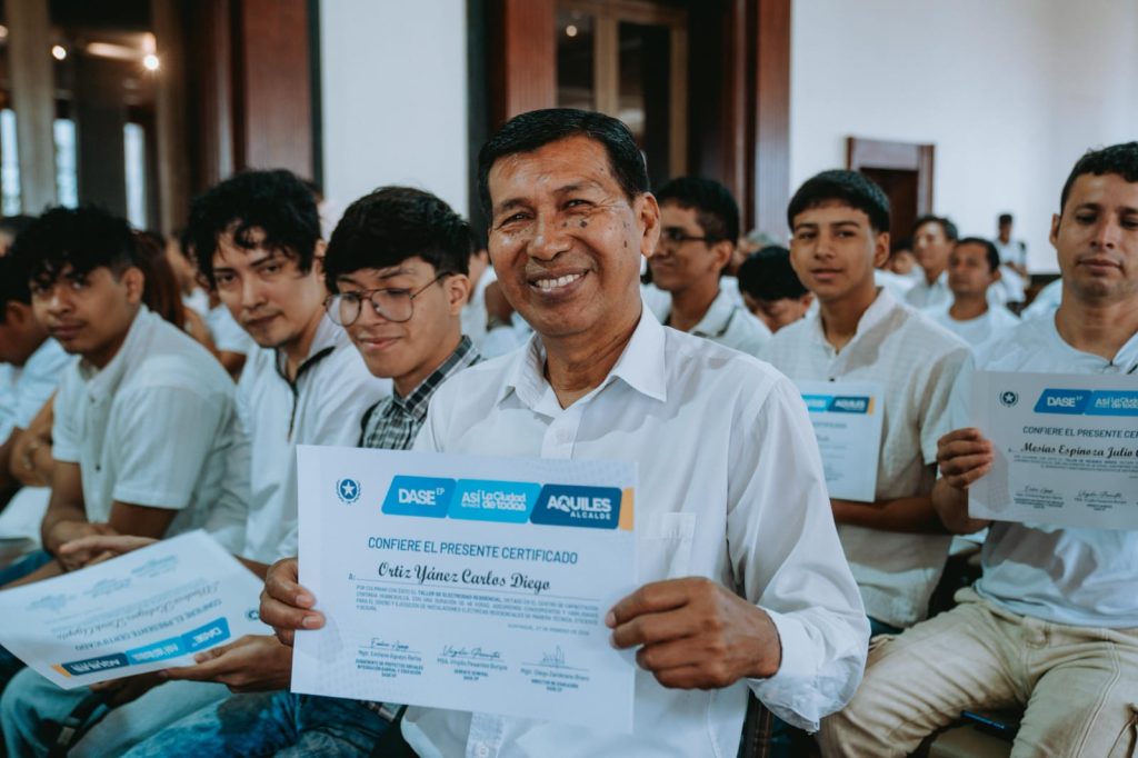 El Centro Cultural Olmedo, antigua sede del Club de la Unión, se convirtió este viernes en escenario de celebración y nuevos comienzos. Un total de 334 ciudadanos recibieron sus certificados tras culminar con éxito los cursos de Mecánica Básica, Electricidad Residencial, Lubricación Automotriz y Mantenimiento de Aire Acondicionado, impartidos por el Centro de Capacitación Continua Huancavilca de EP DASE.