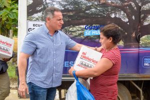 Las raciones fueron entregadas a familias de agricultores afectadas por pérdidas de sus cosechas, en el recinto San Carlos, en...