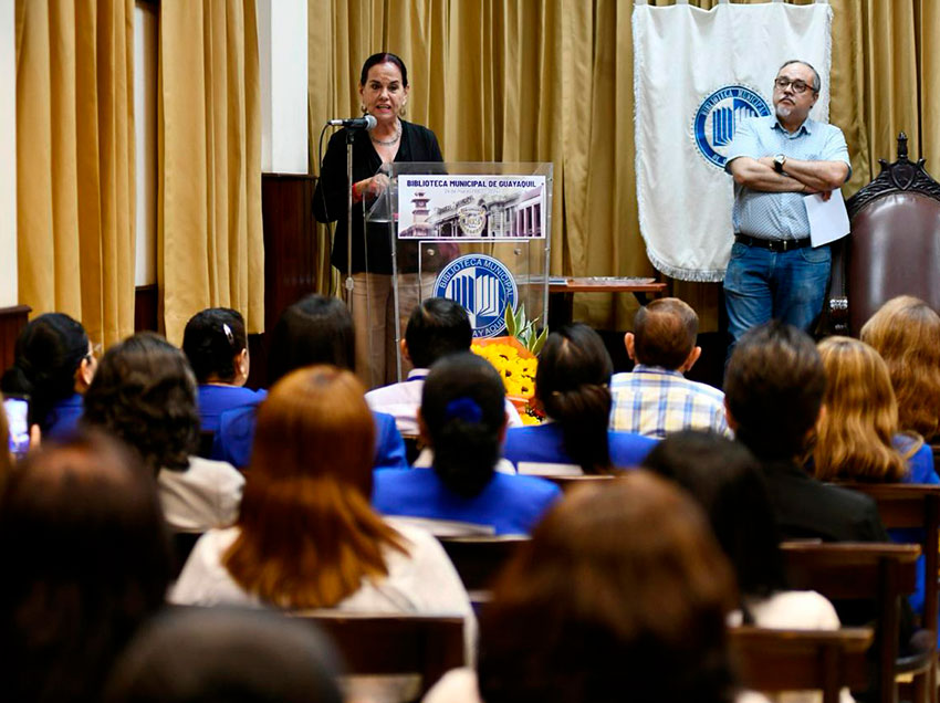 Entre los homenajeados estuvo la bibliotecaria Marjorie Paredes de la facultad de Ciencias Matemáticas y Físicas de la Universidad de Guayaquil, quien custodia 3.326 libros. Ella empezó a trabajar desde que cursaba el segundo año de esta carrera y en su memoria quedó marcada la misión de su jefa al indicarle que debía seguir su legado. “Me siento contenta de recibir una invitación del señor alcalde. Es grato este reconocimiento, tengo 30 años de laborar en la que atiendo a estudiantes de pregrado y posgrado”.