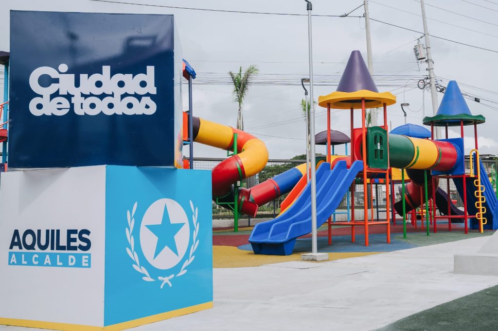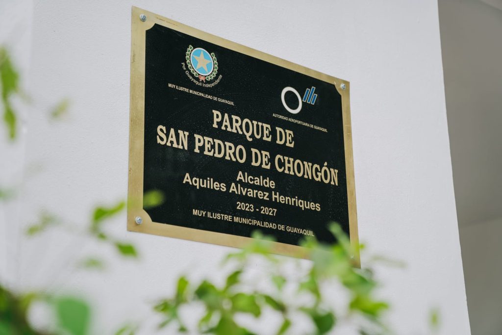 La Alcaldía de Guayaquil, a través de la Autoridad Aeroportuaria, entregó dos nuevos y modernos parques a la comunidad de Chongón, obras que demandaron una inversión de USD 2’430.464,30 y benefician a 14.000 ciudadanos.