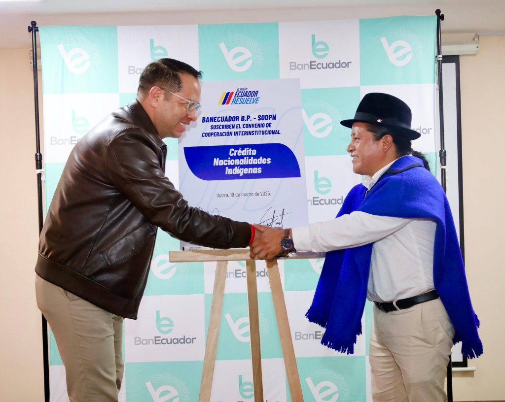 Un crédito para impulsar el desarrollo económico y social de las nacionalidades indígenas del Ecuador fue lanzado por BanEcuador, gracias a un convenio entre la banca pública y la Secretaría de Gestión y Desarrollo de Pueblos y Nacionalidades.