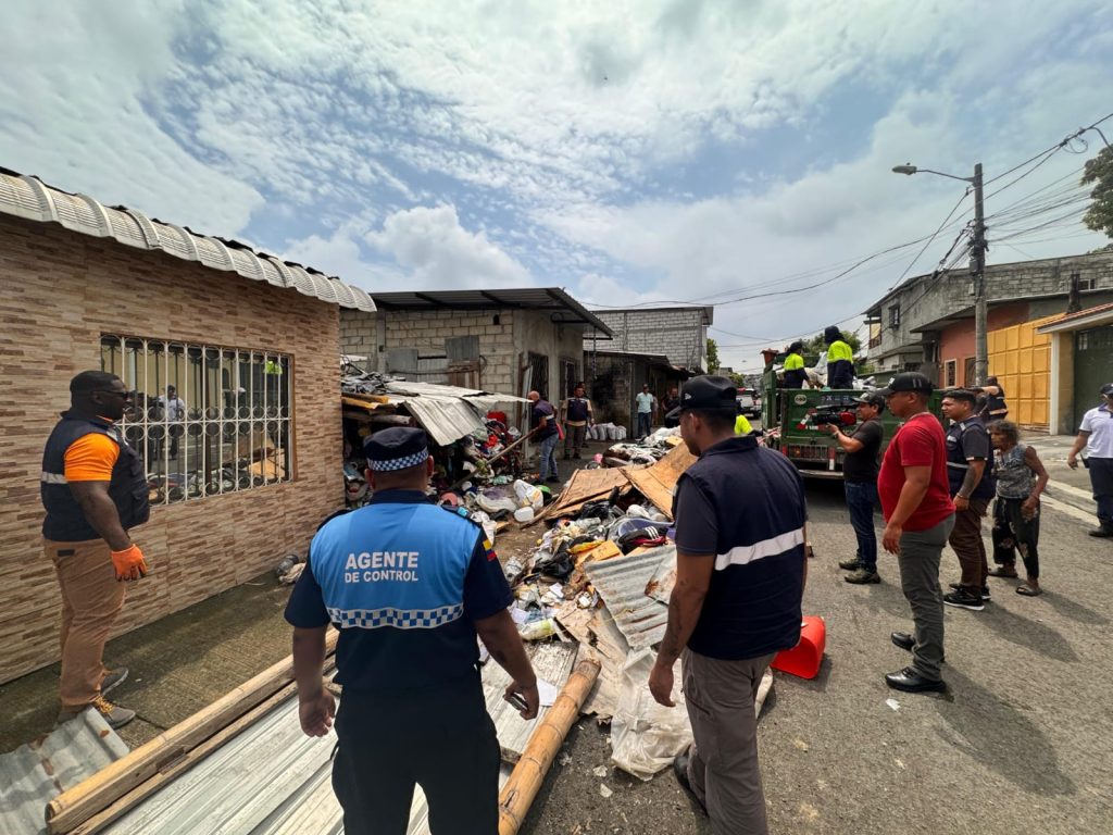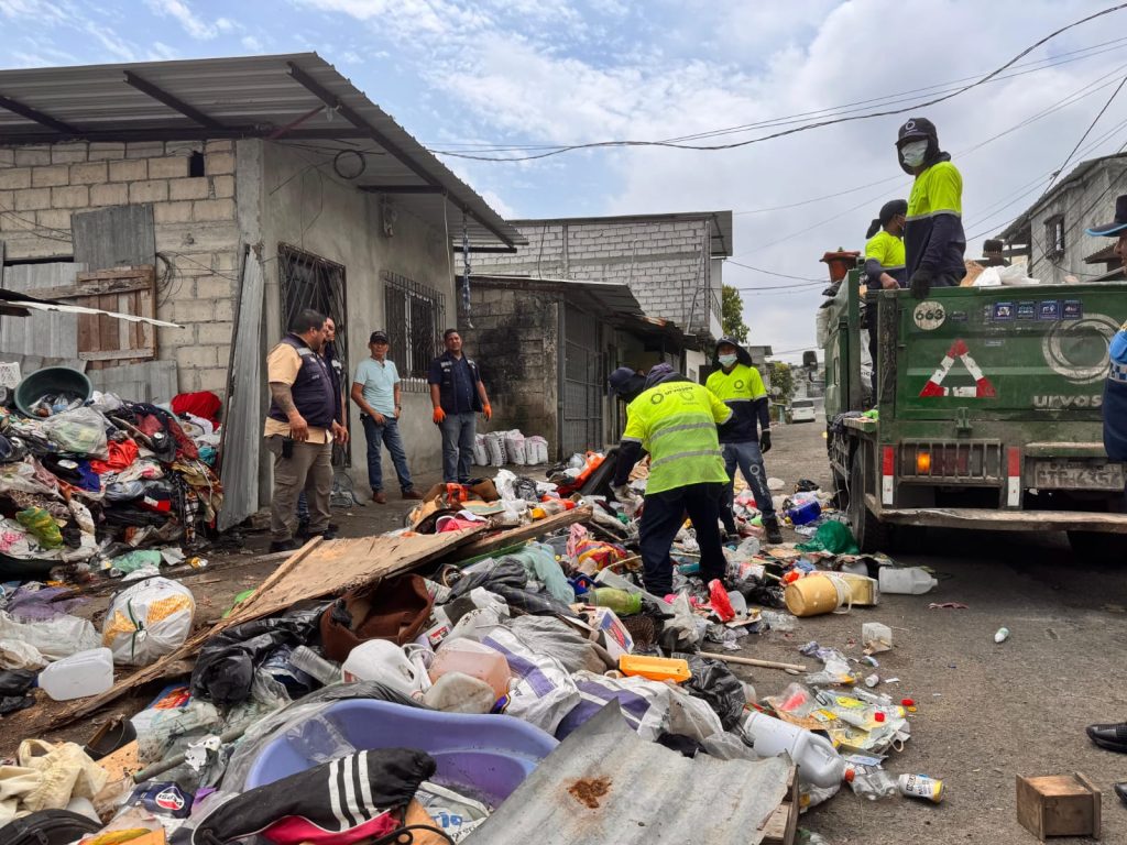La Dirección de Justicia y Vigilancia, en coordinación con la Dirección de Aseo Cantonal, Mercados y Servicios Especiales (DACMSE) y la empresa concesionaria Urvaseo, desplegó un operativo para intervenir un lote que presentaba una gran cantidad de residuos y materiales en desuso.