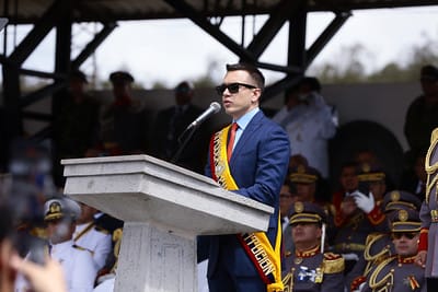El Jefe de Estado se dirigió a las nuevas autoridades militares, señalando que hoy, más que nunca, el Ecuador necesita líderes que actúen con firmeza frente al terrorismo y el narcotráfico; líderes cuyo ejemplo de disciplina, lealtad y patriotismo inspire a las futuras generaciones de la patria. “Estamos seguros de que continuarán la senda de desarrollo, modernización y fortalecimiento institucional que exige la defensa del Estado”, agregó.