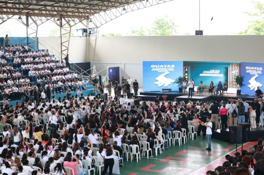 Durante el acto, el presidente Noboa subrayó que el país atraviesa una etapa enfocada en “servicios, construcción y desarrollo, así como de apoyo a la juventud”, y remarcó que “vamos a empezar desde Guayaquil”, pues estas acciones inciden en el presente de las personas y refuerzan su confianza en el futuro.