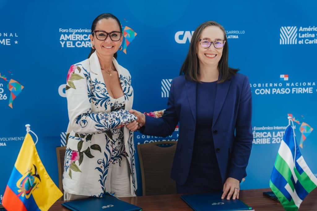 En el Foro Económico Internacional de América Latina y el Caribe, como parte de una agenda estratégica, la Prefecta Marcela Aguiñaga recibe asistencia técnica no reembolsable de $450.000 de la CAF, para la Mancomunidad por el rescate de la cuenca del río Guayas