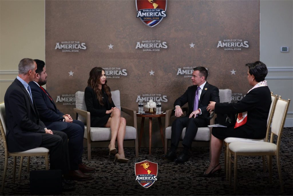 En el marco de la agenda oficial en Estados Unidos, el presidente Daniel Noboa Azin, junto a las demás delegaciones extranjeras, participó en una reunión de alto nivel liderada por Marco Rubio, secretario de Estado, y Kristi Noem, enviada especial para la iniciativa Escudo de las Américas de los Estados Unidos. En ese espacio, ambos funcionarios ratificaron, en nombre del Gobierno estadounidense, la prioridad de fortalecer la cooperación regional para impulsar el desarrollo económico y enfrentar a las estructuras criminales que afectan a los pueblos.