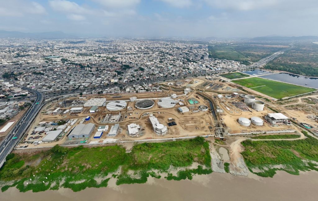 Entre las intervenciones más destacadas se encuentra la Planta de Tratamiento de Aguas Residuales (PTAR) Los Merinos, la más grande del país, que registra un avance del 68,38% y una inversión total de USD 169,3 millones. Ubicada en 50 hectáreas junto a la avenida Narcisa de Jesús, tratará 7,9 m³ por segundo, protegiendo los cuerpos de agua y la salud pública, además de preservar la flora y fauna acuática en beneficio de 1,5 millones de residentes de Tarqui y Pascuales.