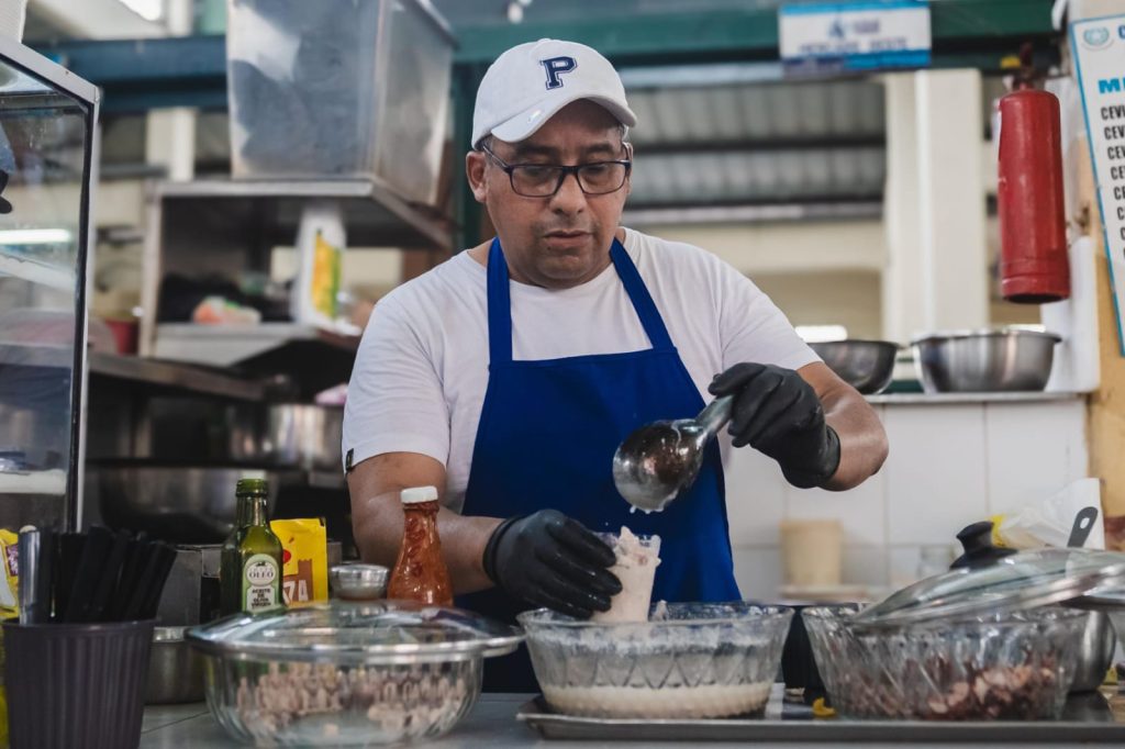 Pablo Torres, comerciante del mercado, recuerda que inició su actividad vendiendo conchas, hasta que decidió incursionar en la cocina y especializarse en ceviches de pescado y camarón. “Aquí viene mucha gente, sobre todo los fines de semana. Invito a toda la ciudadanía a disfrutar de la comida del mercado, atendemos de 08:00 a 15:00”, comenta.