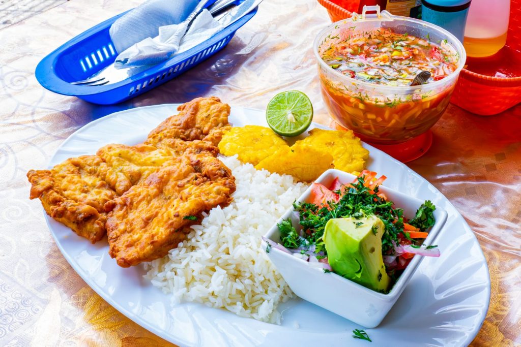 Uno de los puntos más representativos es el Mercado Oeste, ubicado en las calles Diez de Agosto y Lizardo García. De sus 76 puestos, 10 están dedicados a la preparación de alimentos, con una oferta centrada en productos del mar: corvina frita, sudado de pescado, camarones apanados, tortilla de camarón y una variada selección de ceviches. A esto se suman opciones a la carta como bistec de carne y pollo a la plancha, que amplían las alternativas para los comensales.