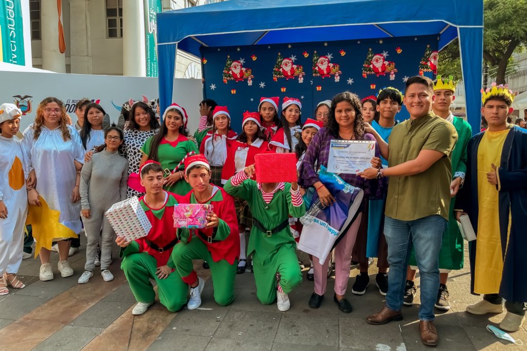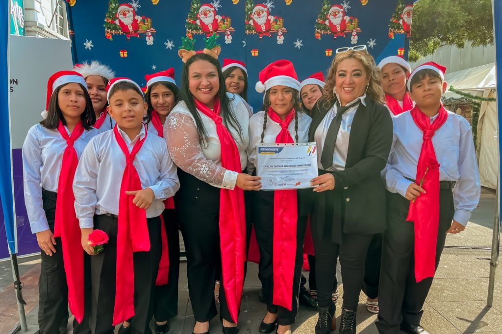 Guayaquil, 10 de diciembre de 2025.- La Plaza de Administración de la Gobernación del Guayas se llenó de voces, color y creatividad durante la tercera clasificatoria de Guayas vive la Navidad, concurso organizado por la Gobernación en coordinación con el Ministerio de Educación.