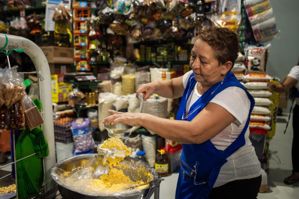La temporada también impulsa la venta de otros productos tradicionales. En el mismo mercado, la comerciante Reyes Cruz ofrece choclo molido para la preparación de humitas, otro de los sabores típicos de estas fechas.