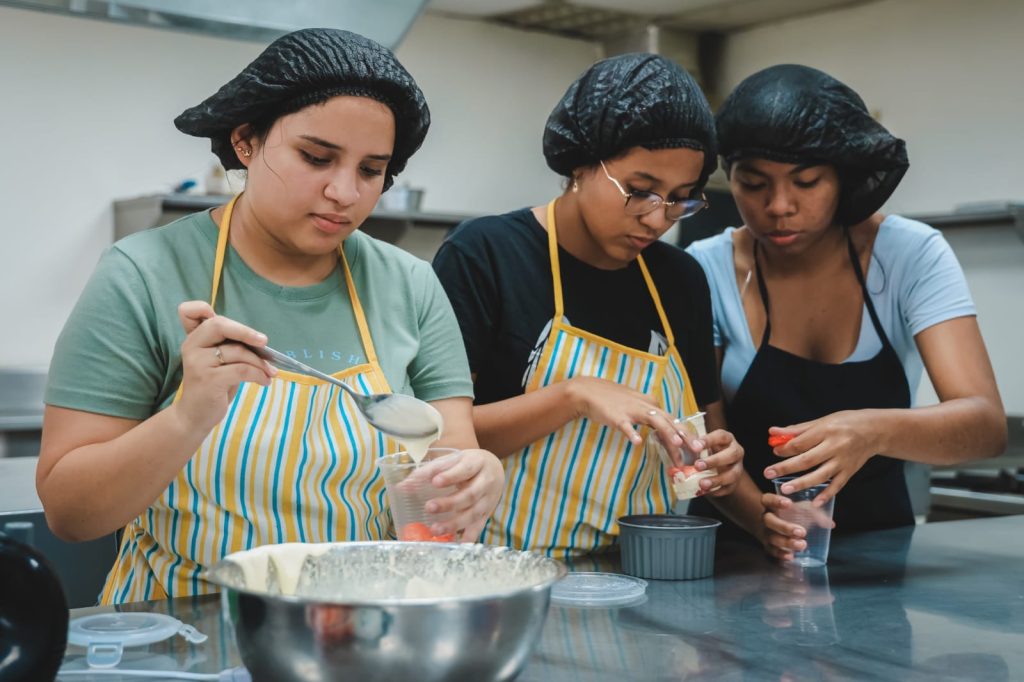 En el mismo Centro de Capacitación Continua Amazonas, Ámbar Alvarado, una joven de 16 años residente del Guasmo, se capacita en talleres de repostería y cocina. “Mis clases favoritas son lo que es pastelerías y lo que son dulces, que ya he hecho tipo alfajores; ahora vamos a hacer fresas con crema, me parece muy bonito”, dijo.