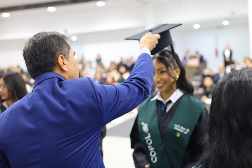 Los graduados son copolinos que se caracterizan por su pensamiento reflexivo, acostumbrados a superar obstáculos y plantear soluciones novedosas a problemas, gracias a lo que aprendieron de manera transdisciplinaria e interdisciplinaria con asignaturas como la robótica, la ciencia, el arte, el deporte y la comunicación. Así lo afirmó durante la ceremonia el rector de COPOL, Mgtr. Rodolfo Chang: “estas características los harán ser valorados en el mundo laboral, social y académico que ahora les abre sus puertas y les espera ansiosos”.