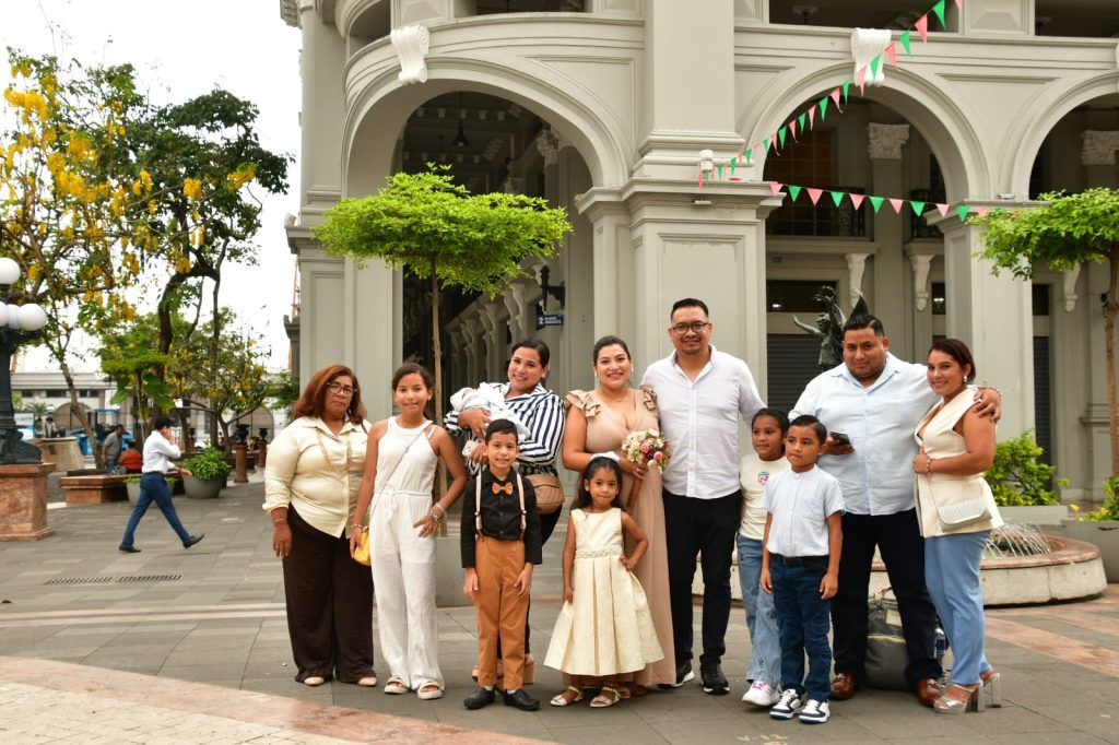 Un ejemplo reciente es el matrimonio de Stefanie Donoso y Carlos Chang. Con el célebre ‘Sí acepto’, se convirtieron en cónyuges y, tras la ceremonia, caminaron hacia el exterior de las oficinas de la Corporación Registro Civil, ubicadas en el edificio El Crillón, para tomarse fotografías en los portales del Palacio Municipal.
