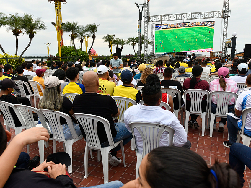 La Fundación Malecón 2000 retoma Palco Malecón junto al Hemiciclo La Rotonda (Malecón y 9 de Octubre), donde habrá 300 sillas y contará con la animación en vivo de Michelle Yépez y Christian Maquilón, presentadores del Canal del Fútbol.