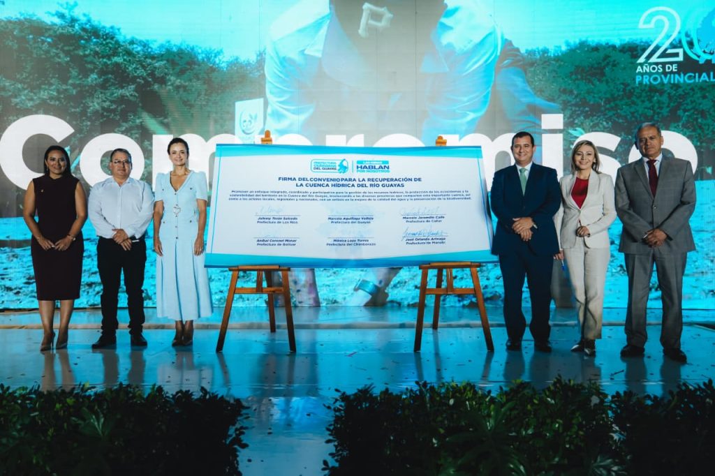 La ceremonia estuvo matizada por la firma del convenio para la consolidación oficial e histórica de la Mancomunidad para la Cuenca del Río Guayas, que permitirá la recuperación del sistema hídrico más importante del Ecuador. La integran Guayas, Manabí, Los Ríos, Chimborazo, Cañar, Bolívar y Cotopaxi. Junto a la prefecta Aguiñaga suscribieron los prefectos de Manabí, Leonardo Orlando, y de Cañar, Marcelo Jaramillo; la prefecta subrogante de Chimborazo, Mónica Loza; la viceprefecta de Los Ríos, Mayra Díaz; y, el viceprefecto de Cotopaxi, Alejandro Plazarte.
