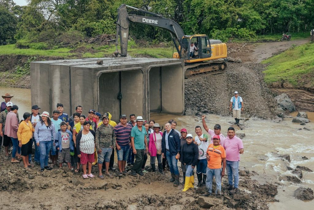 Por su parte, Freddy Peñafiel, agricultor de la zona, destacó el apoyo recibido: “Esto se declaró en emergencia cuando el puente colapsó por las fuertes lluvias. Gracias a la prefecta Marcela Aguiñaga recibimos una atención inmediata. Esta solución beneficia a varios recintos aledaños”.