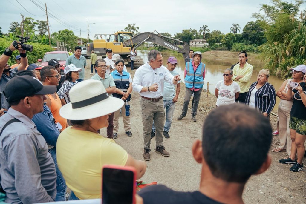 Prefecto encargado, Carlos Serrano, cumplió agenda de trabajo que incluyó labores de limpieza de esteros, reforzamiento de riberas y divulgación de un proyecto vial con la comunidad.