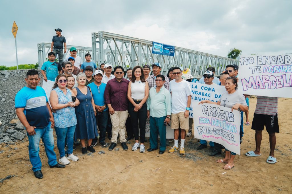 La prefecta Marcela Aguiñaga verificó, este jueves, 27 de marzo, la apertura del puente y socializó con los comuneros los beneficios de la obra. “El puente está en perfectas condiciones, instalado debidamente”, garantizó.