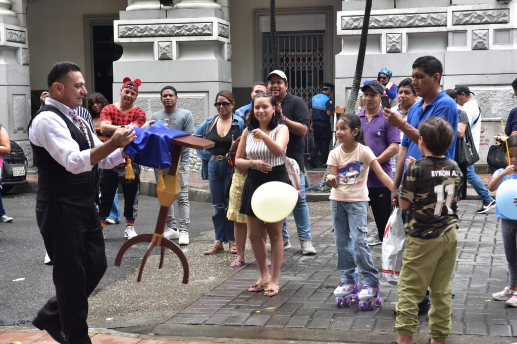 Entre las atracciones estuvieron el Festival de la alegría, con payasos, malabaristas y magos, en la esquina de 9 de Octubre y Panamá; el circo de Arte Nativo, juegos de espadas, bailes modernos, demostración con perros amaestrados, en la Plaza de los Teatros.