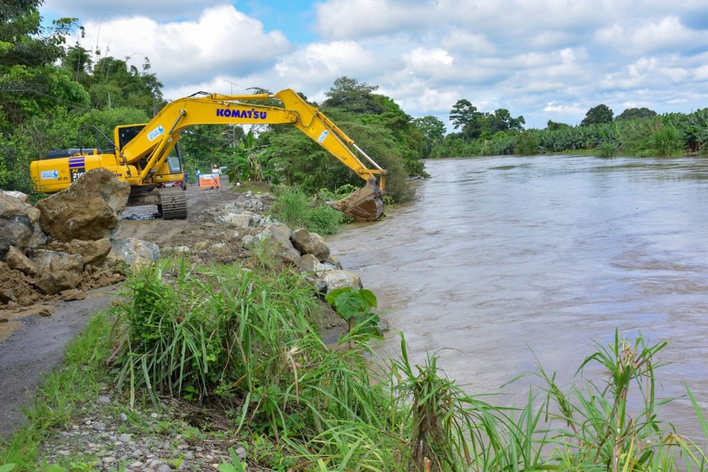 En otra localidad guayasense, en la parroquia Pedro J. Montero, se efectúa la reconformación de un talud de aproximadamente 100 metros lineales con piedra escollera. Con esta medida, se busca estabilizar la zona y evitar que la afectación avance, tras una alarma por socavón presentada en un tramo de la vía que conecta varios recintos con el cantón El Triunfo. “Todos los días salen por aquí cultivos, estudiantes, personas a trabajar. Muy contentos porque lo necesitábamos”, señaló Marcela Bravo, habitante del sector.